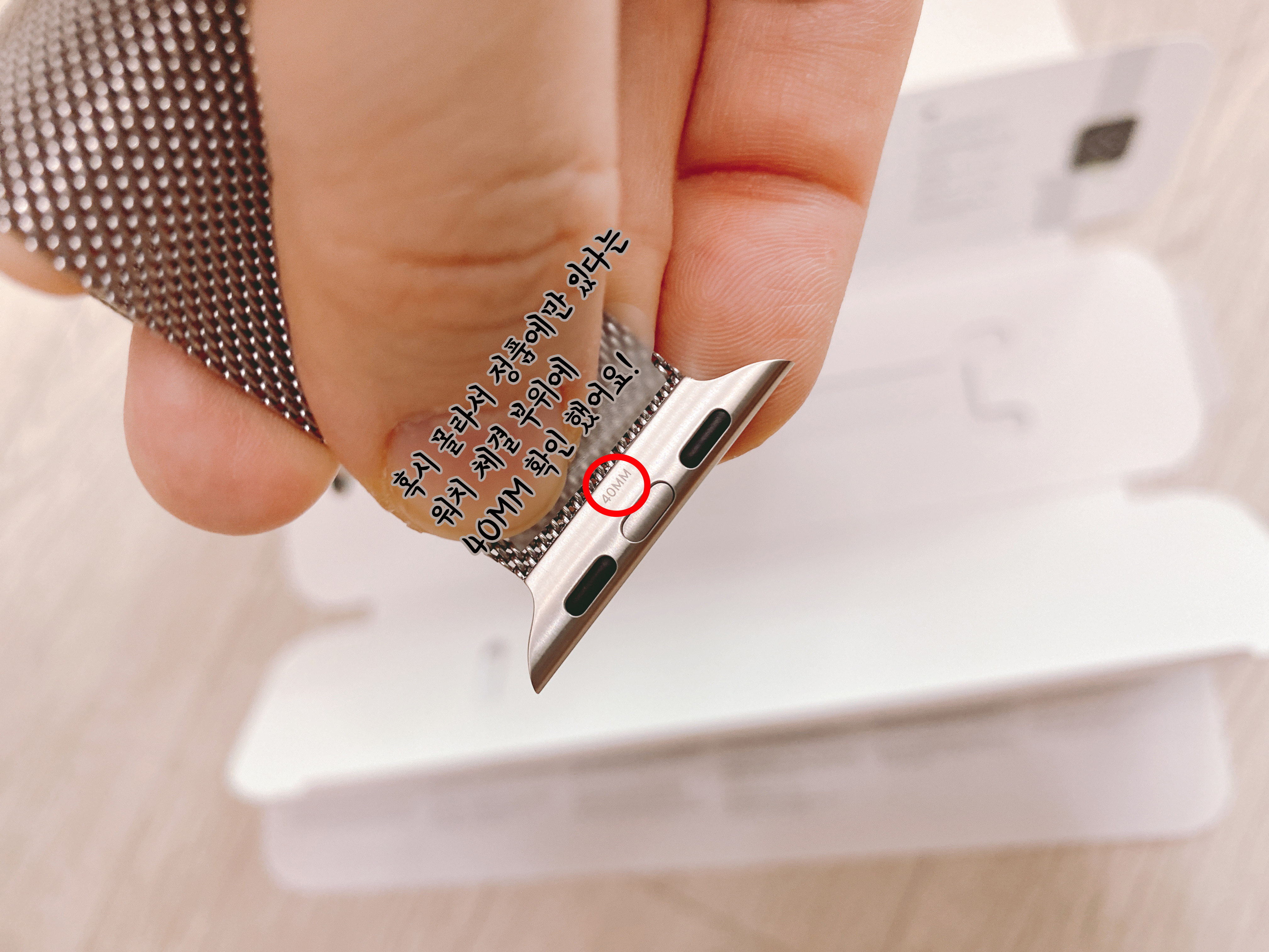 정품이 아닐 확률 0.00000001%지만 그래도 혹시나 하는 마음에 정품에만 적혀 있다는 문구들도 다 확인을 해줍니다. 이 제품이 44mm는 생각보다 품절이 잘 안되는데 40mm!! 특히 실버 색상은 한 번 품절 나면 정말정말 오래 기다려야 입고가 되는 거 같아요.ㅠㅠ