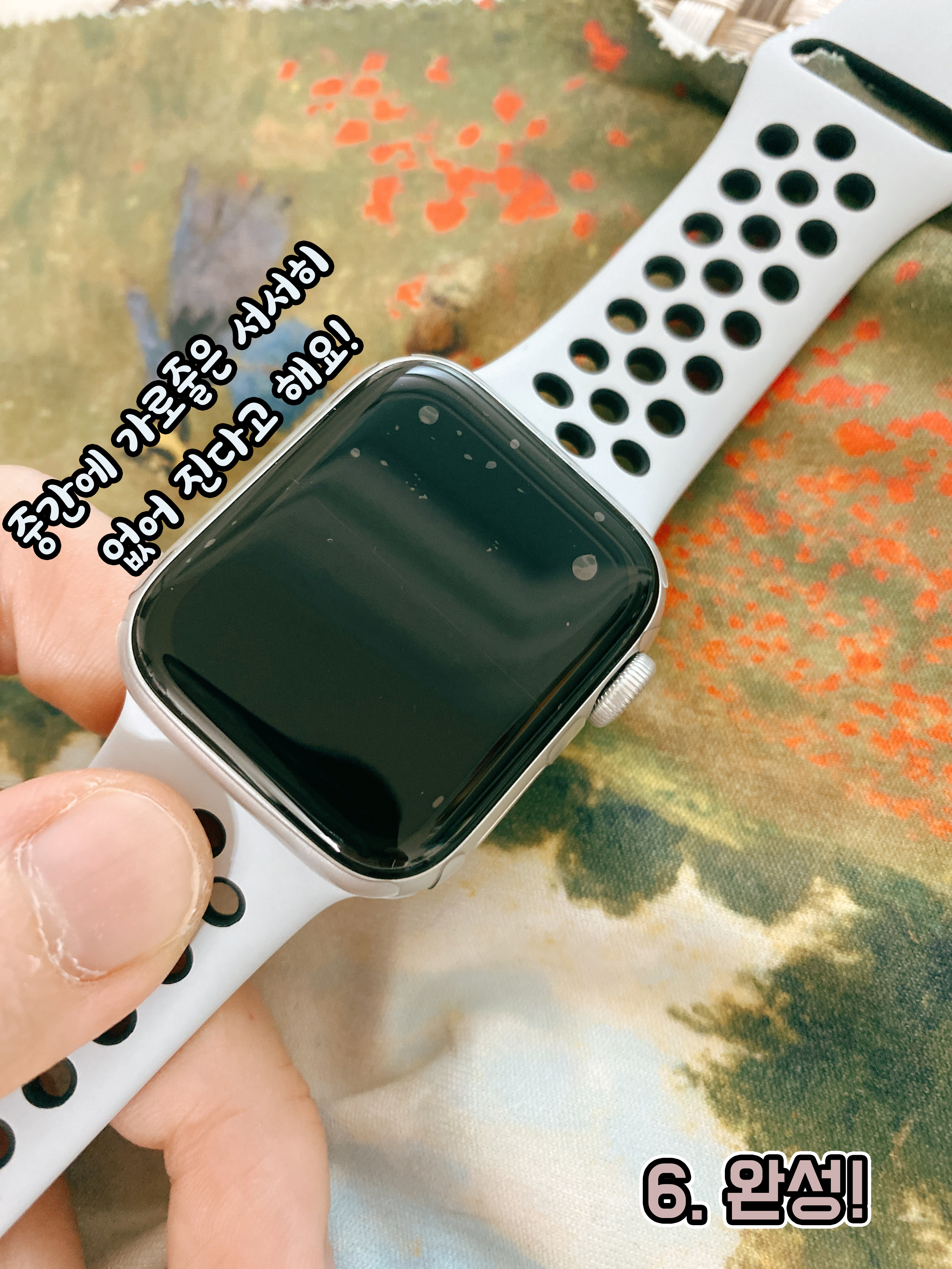 필름 붙이는데 완벽한 금손은 아니지만 그렇다고 똥손도 아닌지라 자신감을 가지고 붙였는데, 나 자신에게 실망스러웠다는...(워치가 좀 어려운 거라고 해주세요.ㅠ)