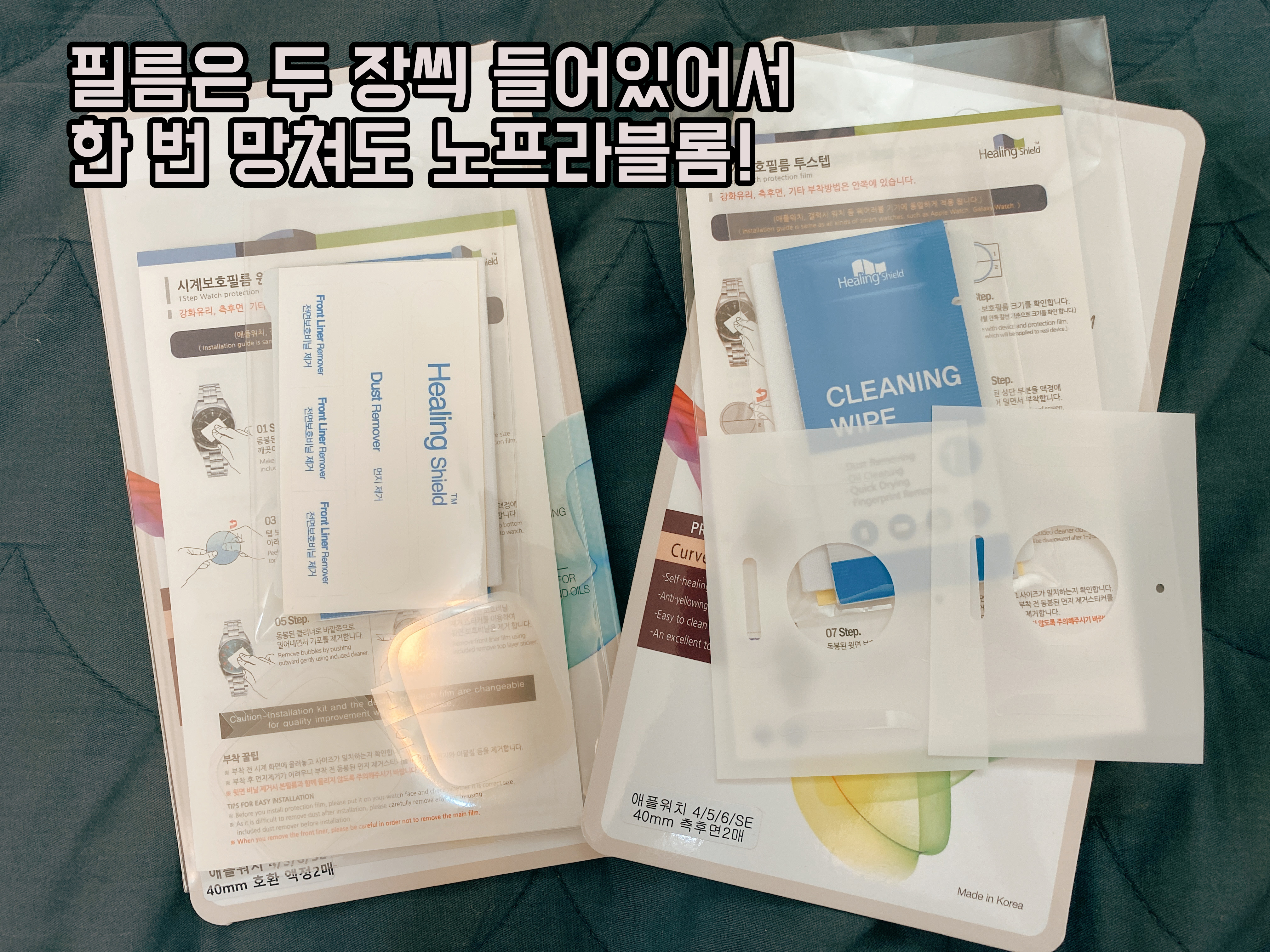 필름은 2장씩 들어있어서 망칠 때를 대비하여 매우 마음이 편안 했습니다. (아이패드 필름이 한 장씩 들어있는 거에 비해선 아주 혜자 같은 느낌)