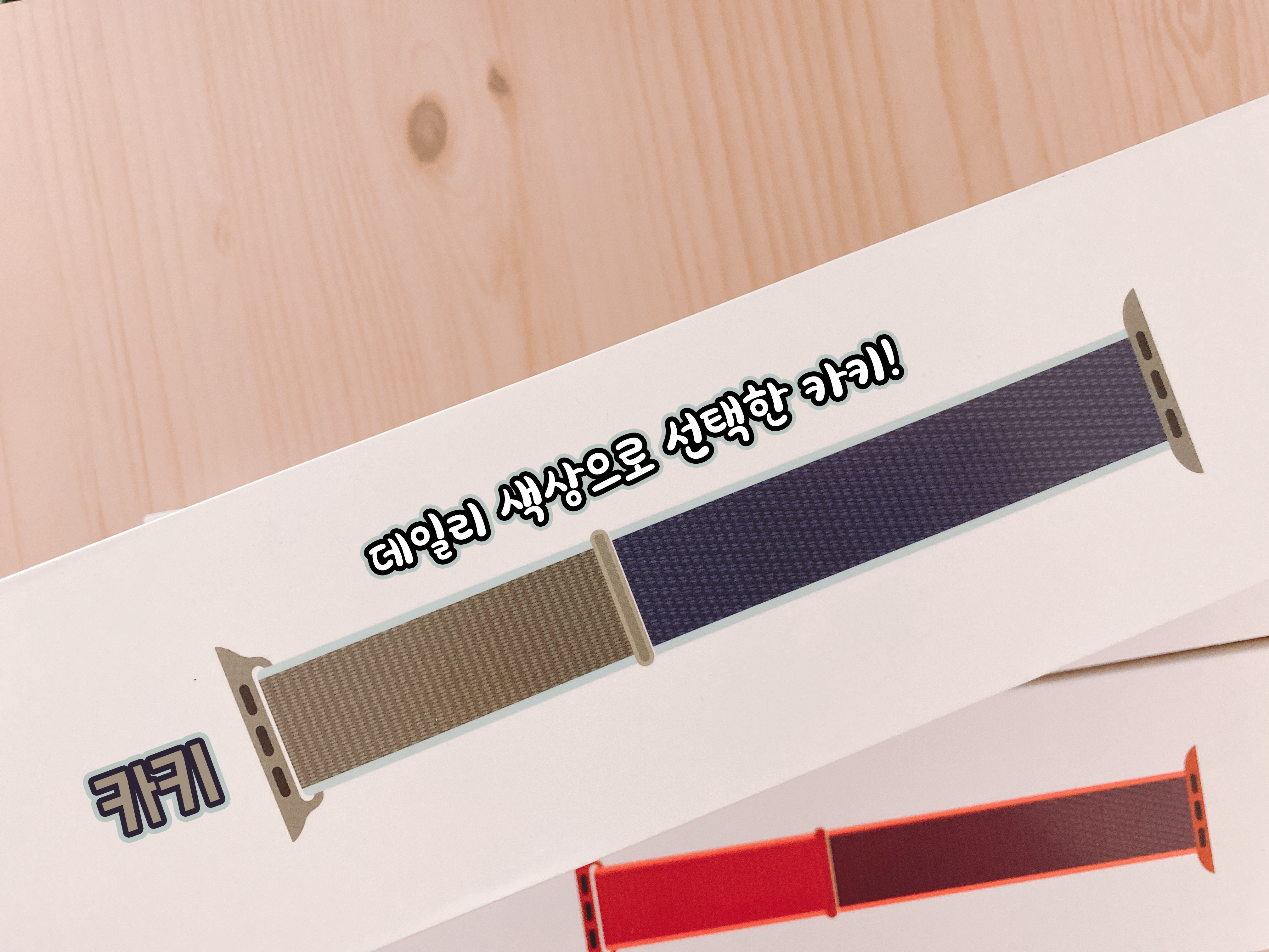 카키도 약간 처음에는 칙칙한 느낌이 들 거 같았는데, 오히려 깔끄미하게 데일리로 사용하기 제일 좋더라고요. 옆에 하늘색띠가 칙칙한 느낌을 많이 없애주기도 하고 차분한 느낌을 만들어줘서 (어두운 계열이라 때도 덜 탈 거 같고ㅋㅋ) 저는 잘 때는 무조건 카키를 차고 잡니다.