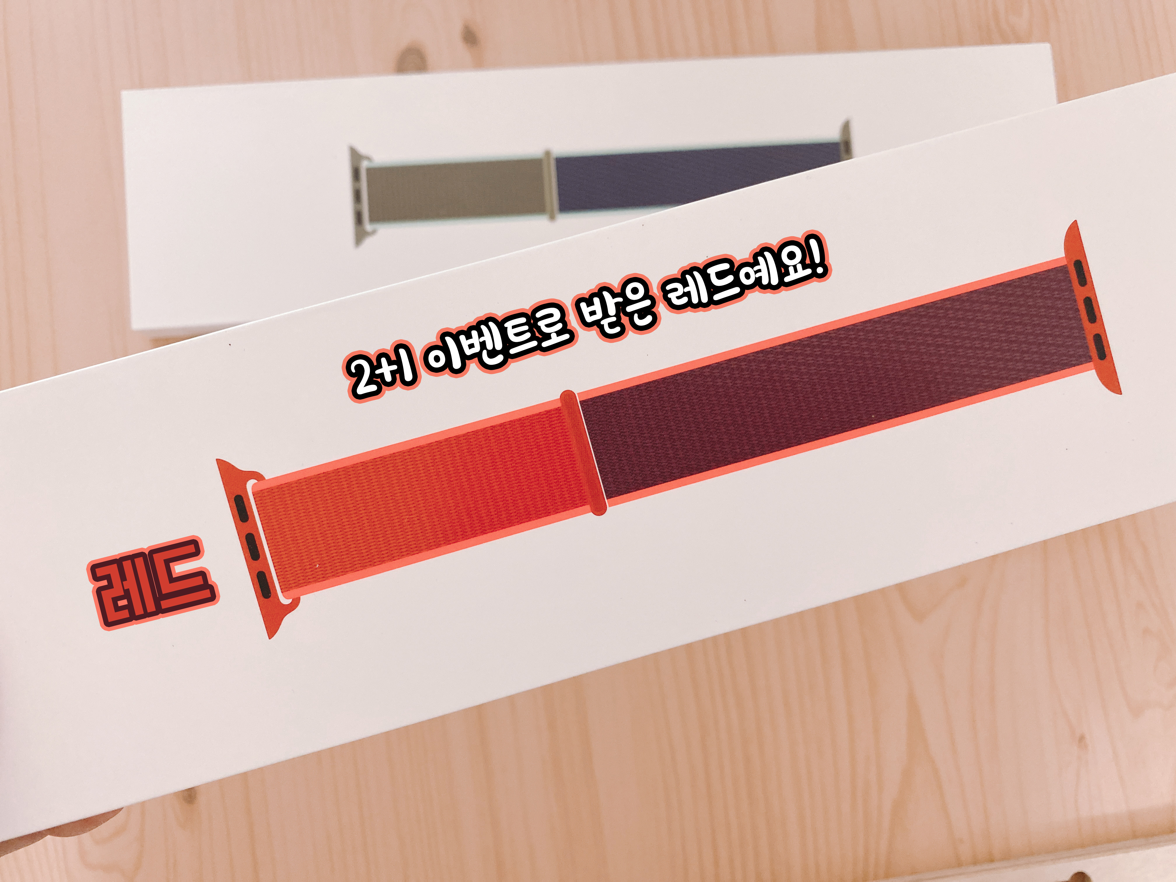 사실 혹시나 싶은 마음에 사장님께 문의글을 남겨 드렸거든요. 스포츠밴드의 그 쇠부분에 알러지가 있어서 이벤트 제품을 스포츠루프로 보내주시면 감사하겠다고 색상은 아무거나 주시는 대로 받겠다며.. 되든 안되든 일단 문의를 넣었는데, 반영을 해주셨더라고요. 넘나 감사했어요.ㅠ 게다가 색상도 여름에 포인트 주기 딱 좋은 레드 색상!!