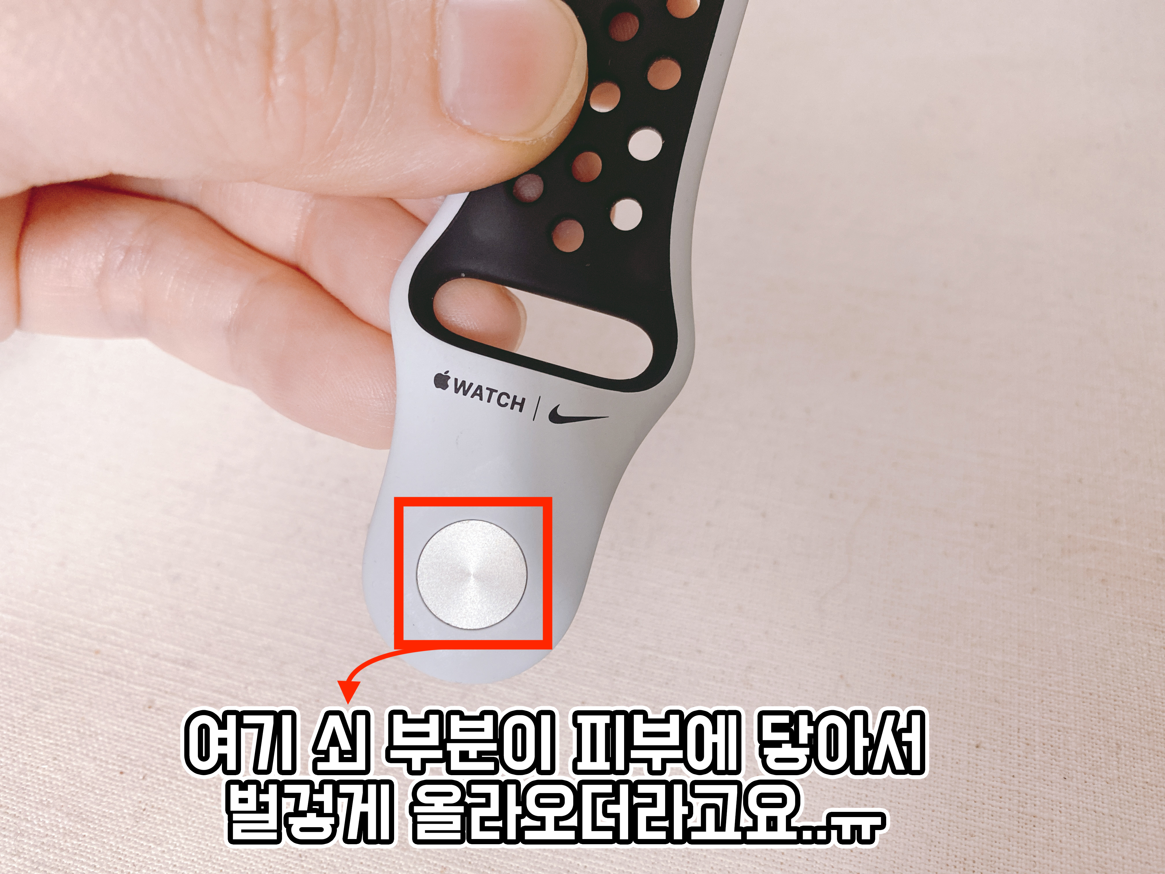 바로 워치 스포츠밴드의 동그란 쇠 부분 아시죠? 그 부분이 닿는 피부 부위예요!